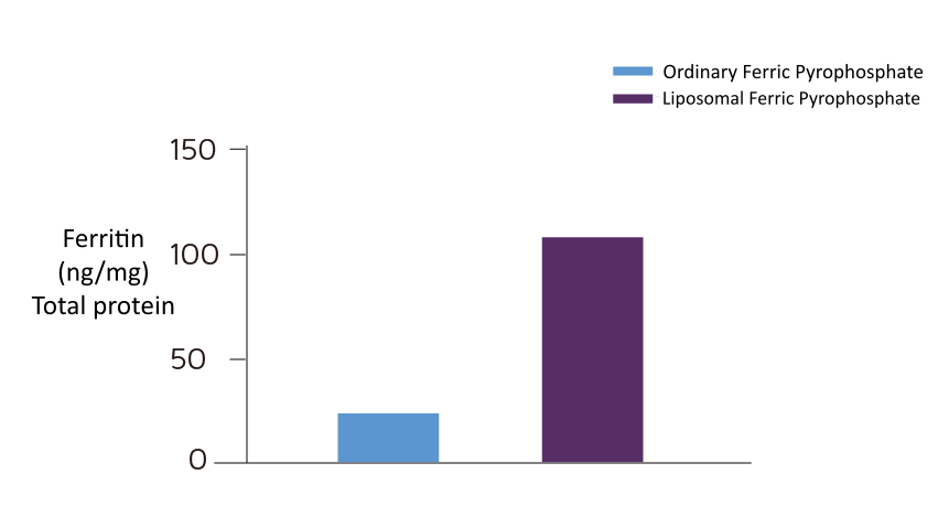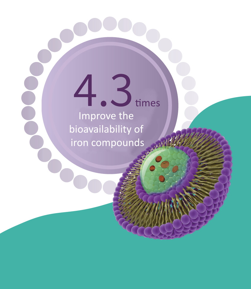 Im Vergleich zu gewöhnlichen Eisenverbindungen erhöht sich die relative Absorption von Eisen über Liposomen um etwa das 4,3-fache.